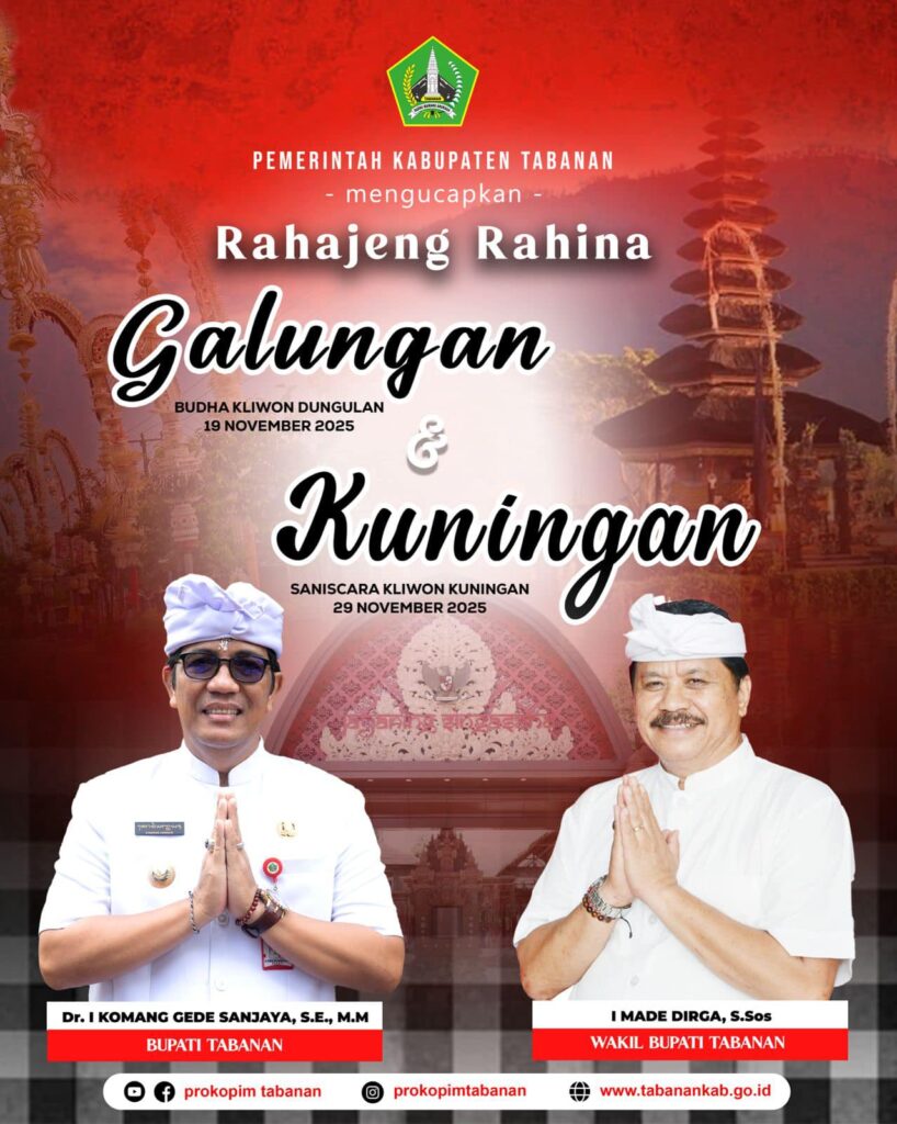 Didampingi Wabup IGN Patriana Krisna, Bupati Kembang mengucapkan selamat Hari Raya Galungan dan Kuningan kepada umat Hindu. Ia berharap perayaan kemenangan dharma atas adharma membawa vibrasi positif bagi seluruh jajaran aparatur pemerintah dan masyarakat Jembrana.